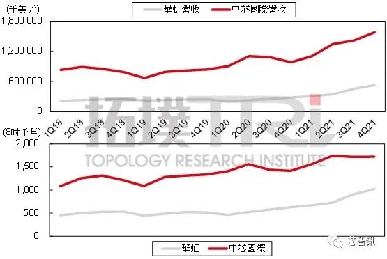 ▲ SMIC and Huahong Semiconductor revenue and wafer sales from 2018 to 2021.(Source: Financial report; organized by Extension Industrial Research Institute, 2022.4)